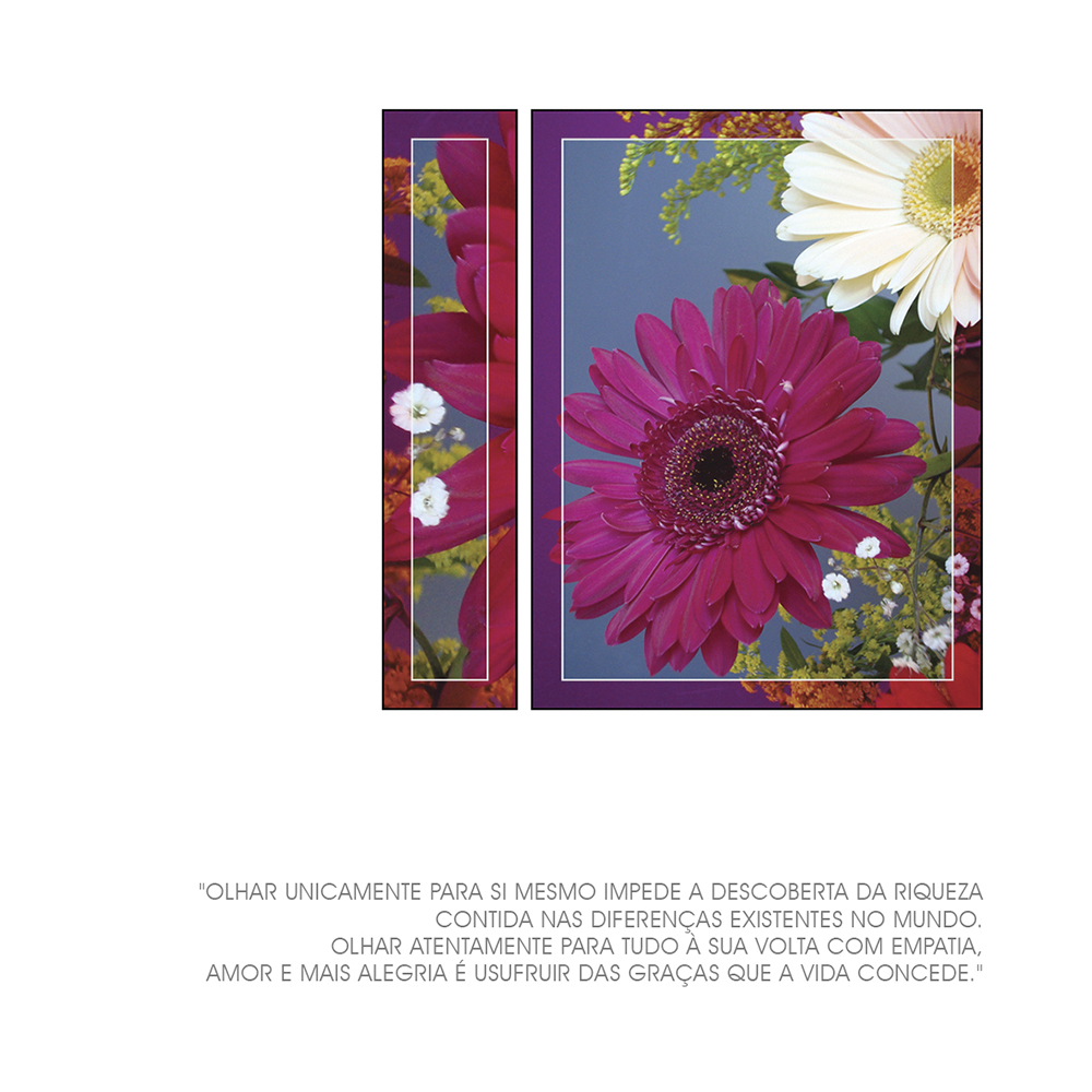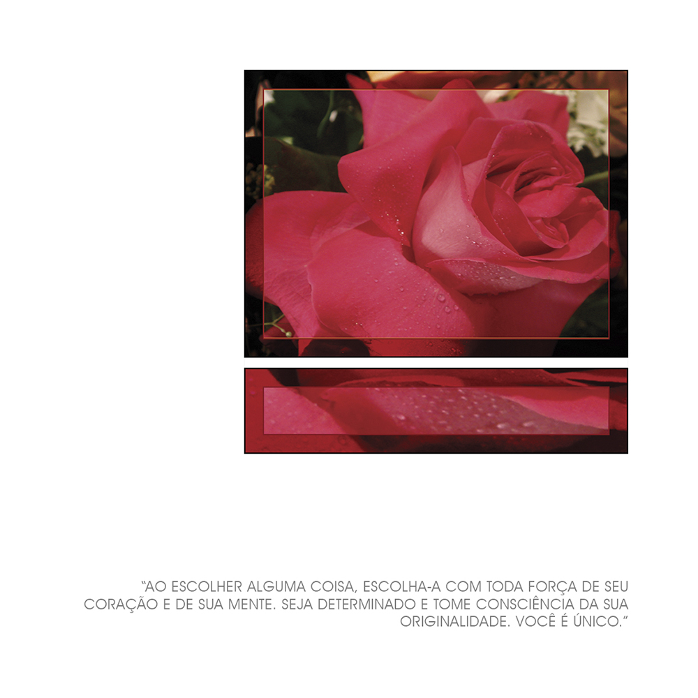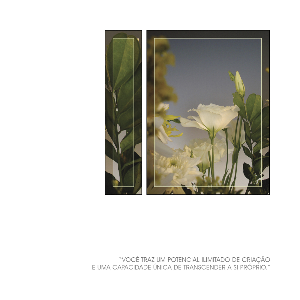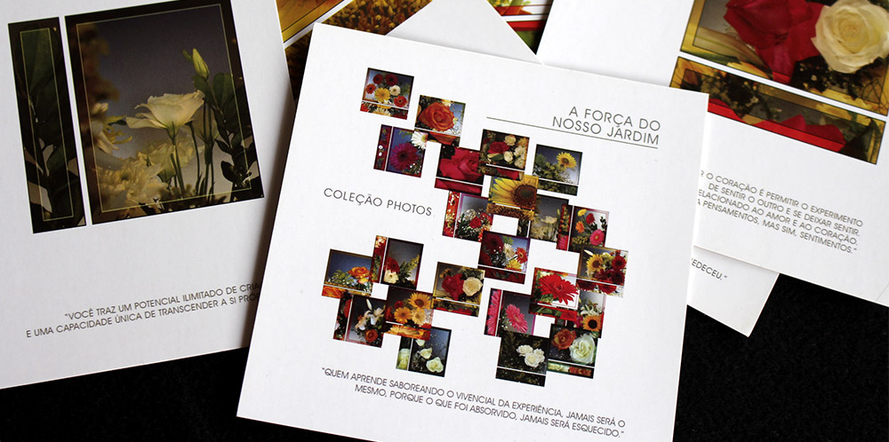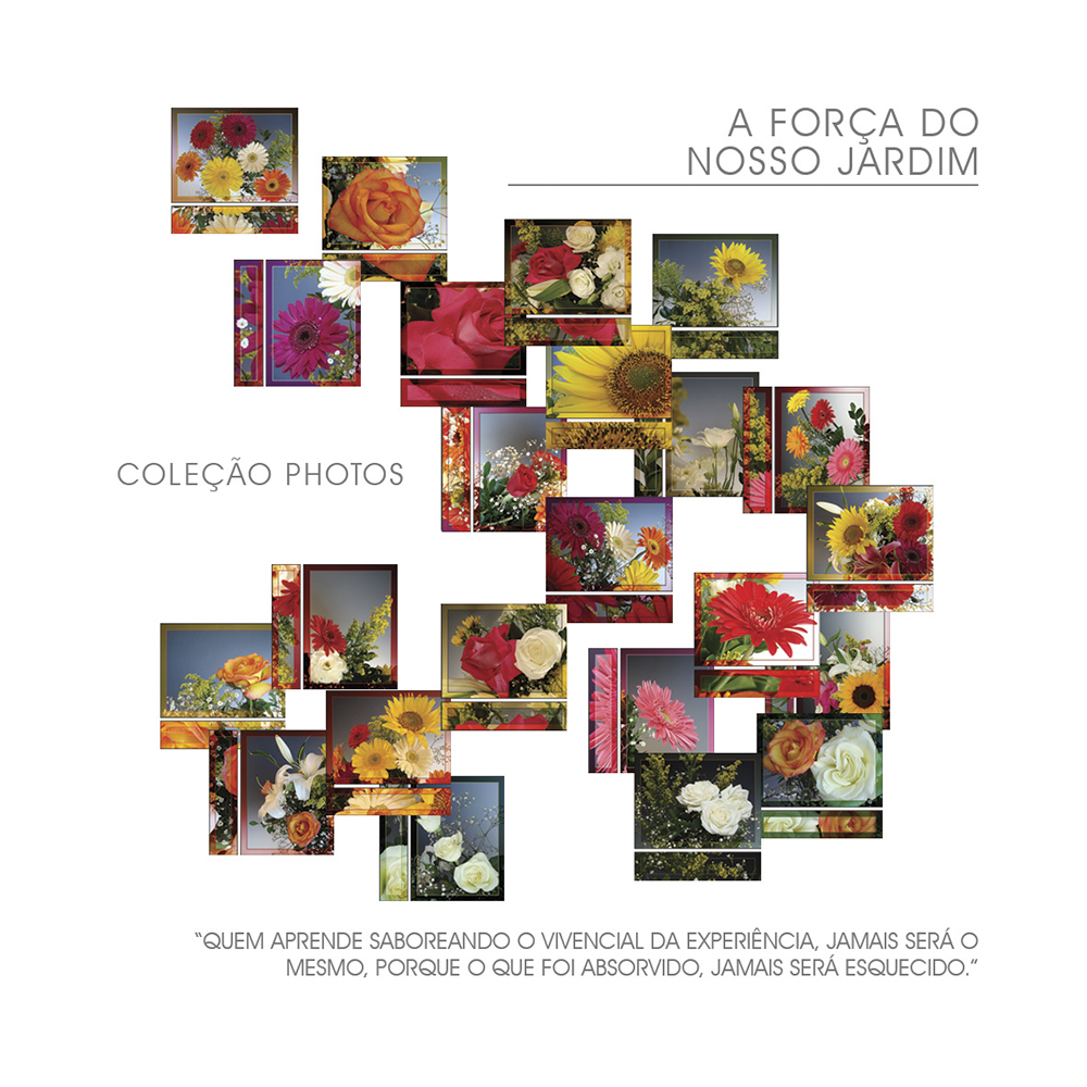 A Coleção PHOTOS A FORÇA DO NOSSO JARDIM propõe conscientizar o ser humano para que desperte e se estruture, através do olhar atento e do exercício do verbo que convida à reflexão sobre as atitudes, os pensamentos, os sentimentos e as sensações mais profundas.